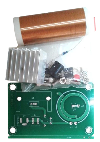Matériaux : Bobinage en fil de cuivre émaillé, condensateur haute tension, support isolant.